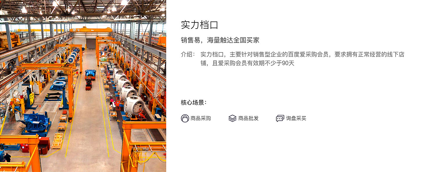 主要針對銷售型企業(yè)的百度愛采購會員,要求擁有正常經(jīng)營的線下店鋪,且愛采購會員有效期不少于90天