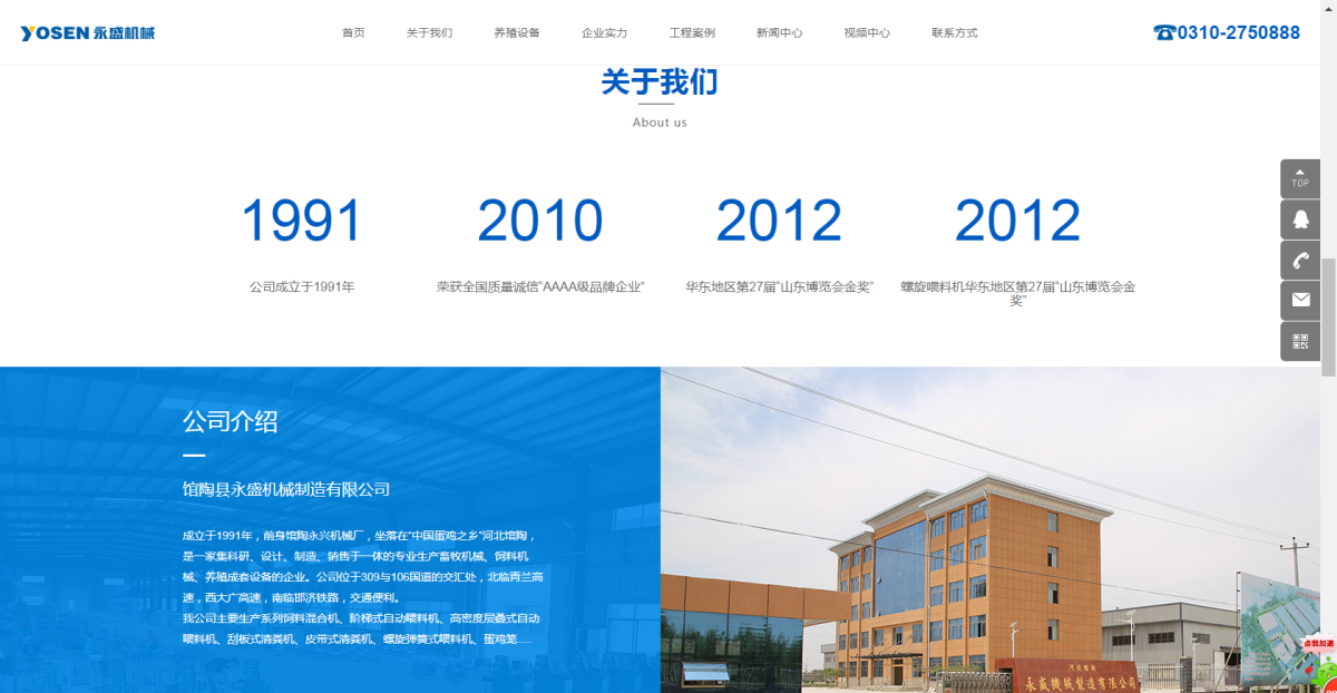 館陶縣永盛機(jī)械制造有限公司成立于1991年,前身館陶永興機(jī)械廠,坐落在“中國(guó)蛋雞之鄉(xiāng)”河北館陶,是一家集科研、設(shè)計(jì)、制造、銷售于一體的***生產(chǎn)畜牧機(jī)械、飼料機(jī)械、養(yǎng)殖成套設(shè)備的企業(yè)。公司位于309與106國(guó)道的交匯處,北臨青蘭高速,西臨大廣高速,南臨邯濟(jì)鐵路,交通便利。